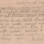 I came across this 1901 postcard at the back of the notebook, so it’s a bit out of sequence. It is a postcard written by Edward Frasier, sent to his mother Ann [Campbell] Frasier. Ashland Neb 4-13-01 Dear Mother, The recipe for the cough syrup that Nellie asked for is as follows: Good whiskey, 5 […]